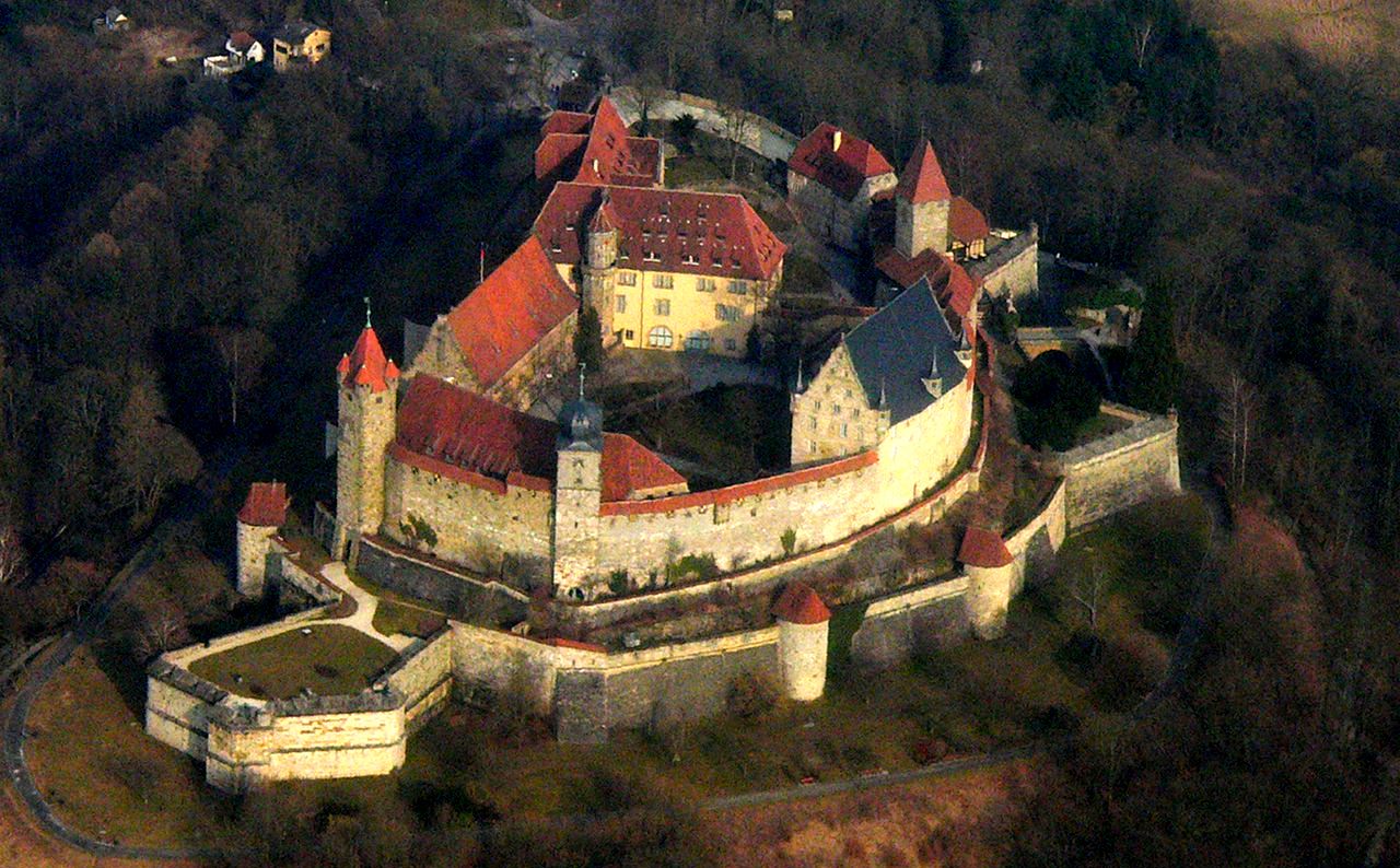 A document signed by Pope Honorius II in 1206 refers to a mons coburg, a hill settlement. In the 13th century, the hill overlooked the town of Trufalistat (Coburg’s predecessor) and the important trade route from Nuremberg via Erfurt to Leipzig. A document dated from 1225 uses the term sloss (palace) for the first time. At the time, the town was controlled by the Dukes of Merania (or Meran). They were followed in 1248 by the Counts of Henneberg, who ruled Coburg until 1353, save for a period from 1292-1312, when the House of Ascania (Askanien) was in charge. In 1353, Coburg fell to Friedrich, Markgraf von Meißen of the House of Wettin. His successor, Friedrich der Streitbare, was awarded the status of Elector of Saxony in 1423. Thus, Coburg – despite being in Franconia – was now referred to as “Saxony”, like other properties of the House of Wettin. As a result of the Hussite Wars, the fortifications of the Veste were expanded in 1430.