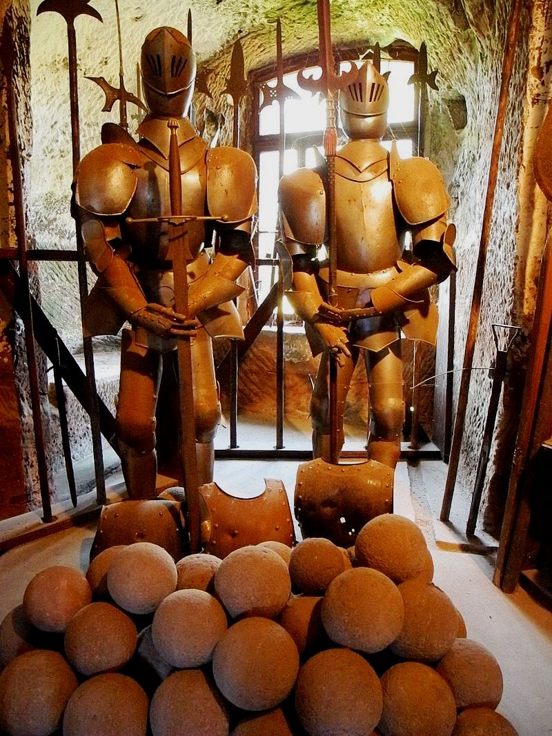 Armour and stone catapult/cannon balls. At the age of eight, these were the first I had seen. During the 13th century, feudal tenants, who carried the name “von Berwartstein” inhabited the castle, which they used as a base for raids in the manner of robber barons. The imperial cities of Strasbourg and Hagenau joined forces against the von Berwartsteins. Following several weeks of futile attacks against the castle, they succeeded in taking it in 1314, with the help of a traitor. A large amount of booty and about 30 prisoners were taken to Strasbourg. The knights of Berwartstein were permitted to buy the prisoners back for a large ransom. The knights of Berwartstein were forced to sell their castle to the brothers Ort and Ulrich von Weingarten. Four years later the castle became the property of Weissenburg Abbey. The monastery at Weissenburg placed the castle in stewardship and established a feudal system. This allowed for the dismissal of vassals who became too presumptuous. Thus the monastery held possession of the castle for some time. This could have continued indefinitely had the last steward of the castle (Erhard Wyler) not gone too far. When he began feuding with the knights of Drachenfels, the Elector of the Palatinate took the opportunity to bring the Berwartstein Castle under his control. Because of his dynastic ambitions, the Elector of the Palatinate wanted to bring all of the Weissenburg estate under his control. To accomplish this, in 1480 he ordered the knight, Hans von Trotha, who was Marshal and Commander in Chief of the Palatinate forces, to acquire to Berwartstein. In this way he could enlarge the property at a cost to the Monastery of Weissenburg. For the quarrelsome knight this was a pleasure to fulfil, since this gave him a chance to take personal revenge on the Abbot of Weissenburg. Years before, Abbot Heinrich von Homburg had imposed a church fine on his brother, Bishop Thilo.