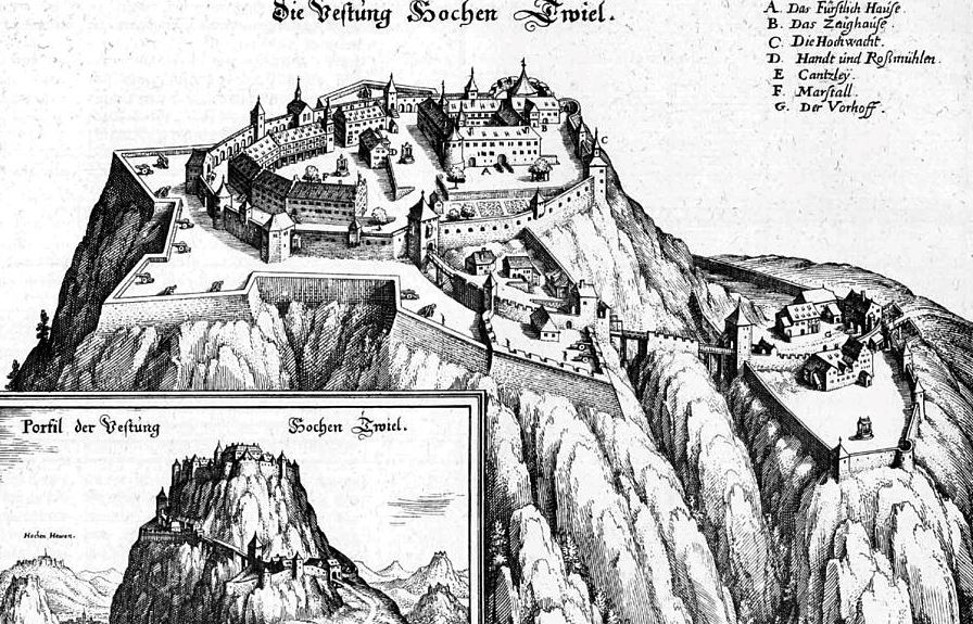 Festung Hohentwiel, 1643, Merian illustration.
