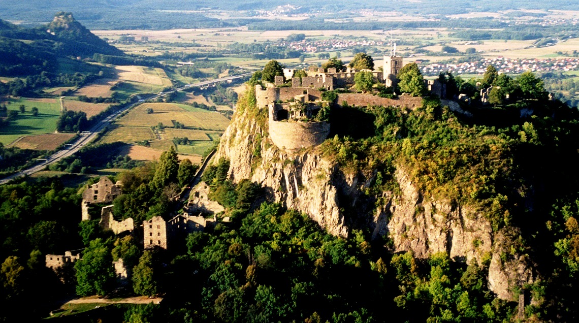 The fortress resisted five Imperial sieges sieges in the Thirty Years’ War, under the command of Konrad Widerholt between 1634 and 1648. The effect was that Württemberg remained Protestant, while most of the surrounding areas returned to Catholicism in the Counterreformation. The castle served as a Württemberg prison in the 18th century and was destroyed in 1800 after being peacefully handed over by the French. Today the former fortress Hohentwiel is the largest castle ruin in Germany. The modern city of Singen nestles at the foot of the mountain.