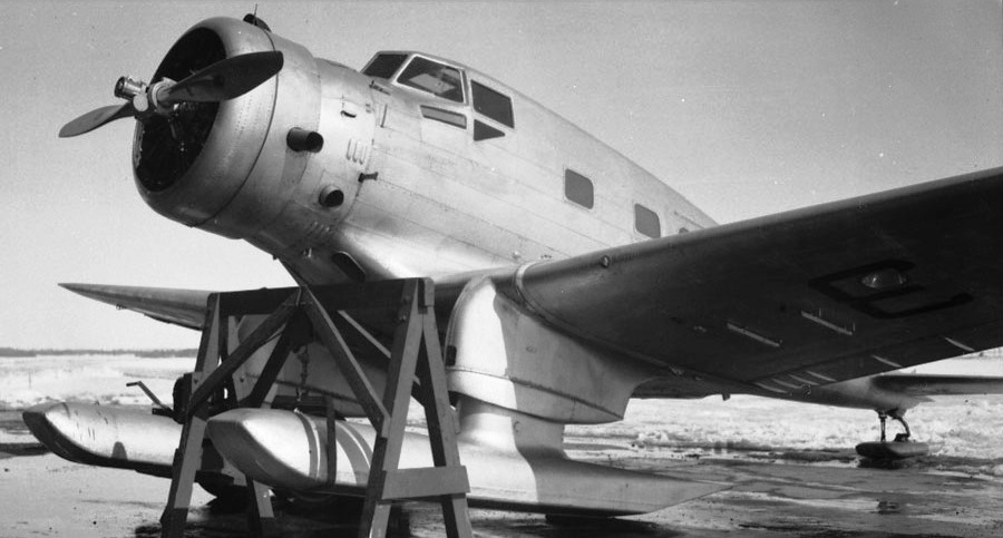 Northrop Delta Mk. II, RCAF (Serial No. 673) on skis, Apr 1939.