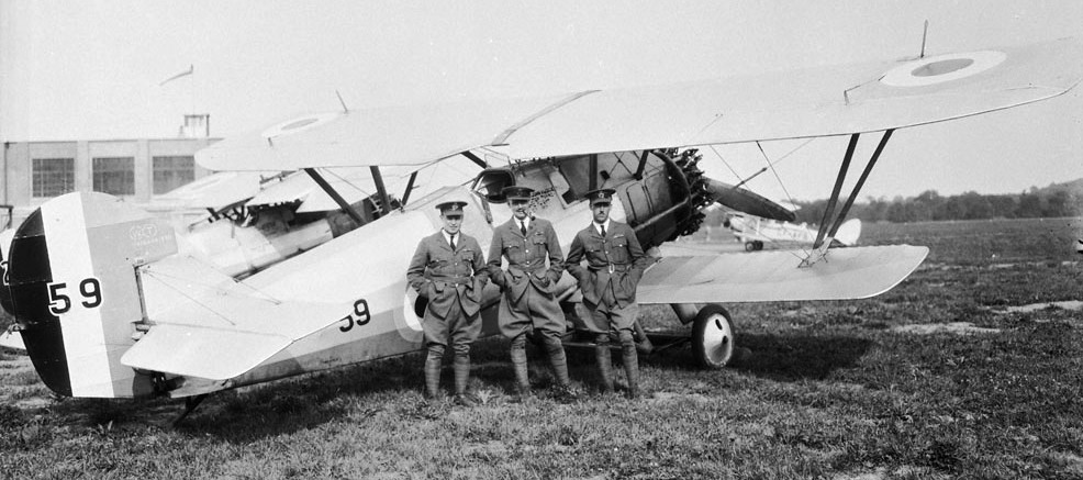 Armstrong Whitworth Siskin Mk. IIIA, RCAF (Serial No. 59), later No. 305, with F/O E.A. McNab, F/L F.V. Beamish, P/O E.A. McGowan, ca 1929.