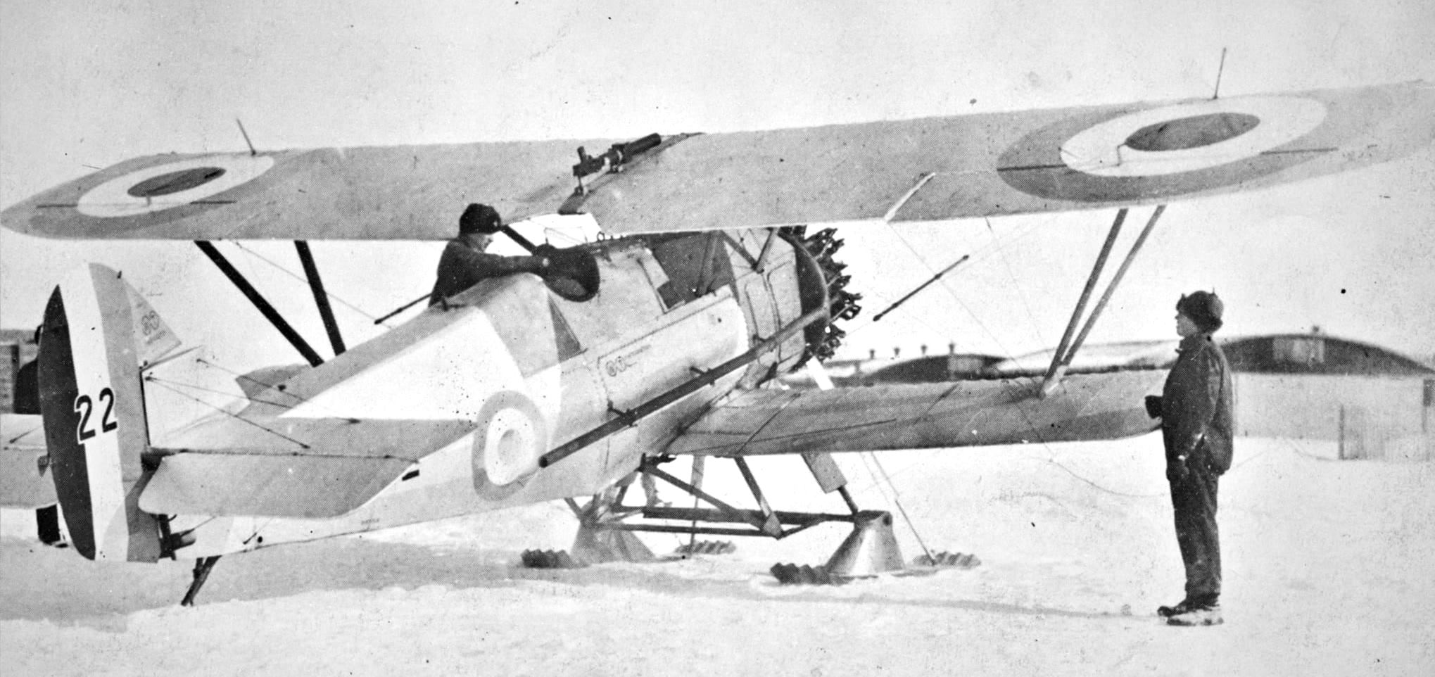 Armstrong Whitworth Siskin Mk. IIIA, RCAF (Serial No. 22), later (Serial No. 304), on skis, from the Fighter Flight at RCAF Station Camp Borden, Ontario.