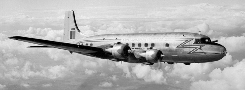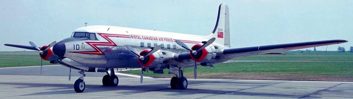 Canadair C-5 North Star VIP Transport, RCAF (Serial No. 10000).   The number “10” on the nose would later be removed and replaced with “C5”, to avoid confusion with RCAF North Star (Serial No. 17510), also with the identifier number “10” on the nose.  (Ken Pickford)