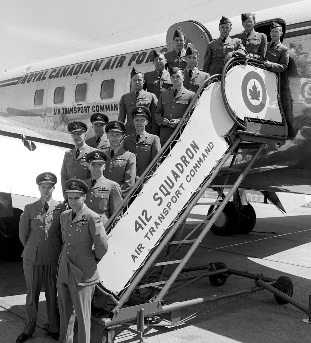 Canadair C-5 North Star, No. 412 Squadron, group shot of crew before departure.