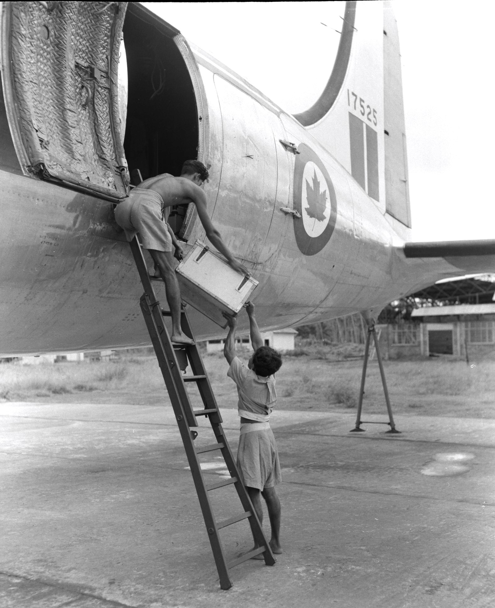 Canadair CL-2 North Star, being unloaded by Canadians on UN Duty, ca 1960s.
