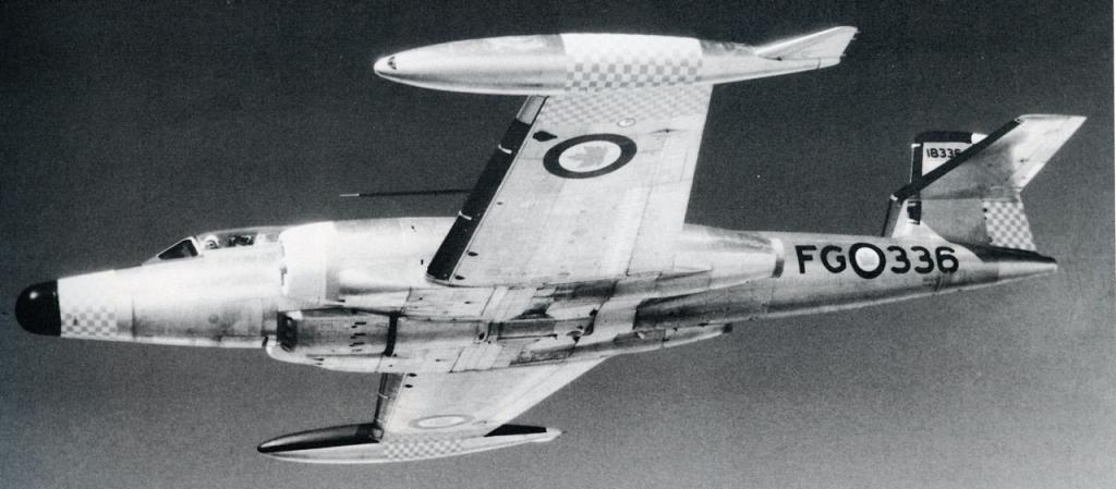 Avro CF-1004B (Serial No. 18335). This was the first camouflaged CF-100 received by No. 445 Squadron on 18 Sep 1956,. It was delivered by crew F/ L K. Jackson and F/O M. Marah from Malton to Uplands in an unofficial time of 26 minutes.