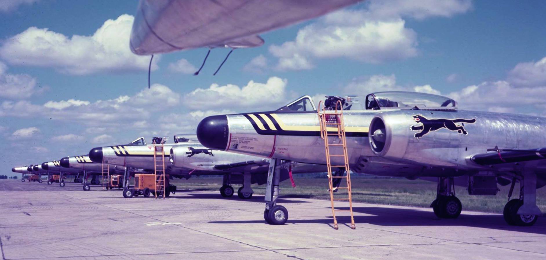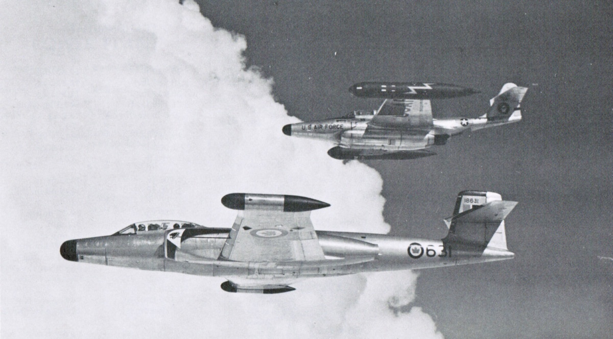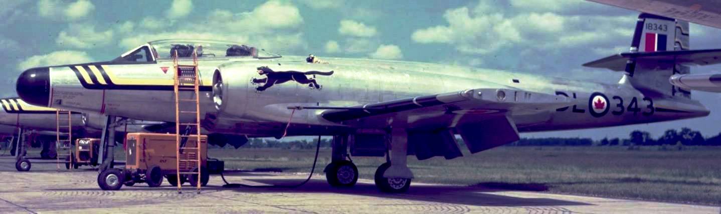 The aircraft are from No. 445 ‘Wolverine’ AW (F) Squadron based at No. 1 (F) Wing at Marville, France. They replaced the Canadair Sabres from No. 410 ‘Cougar’ (F) Squadron in November, 1956. (Chris Charland)