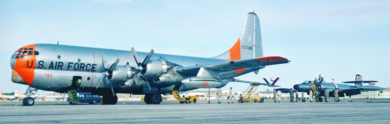 Avro CF-100 Canuck Mk. 4B (Serial No. 18434), No. 440 Squadron being refueled by A Boeing KC-97 Tanker from USAF SAC, on the ground at Patrick. AFB. While not necessary at this base, the refuelling is in practice for the stops in Brazil the two CF-100s will make while being ferried to Ascension Island in the South Atlantic.