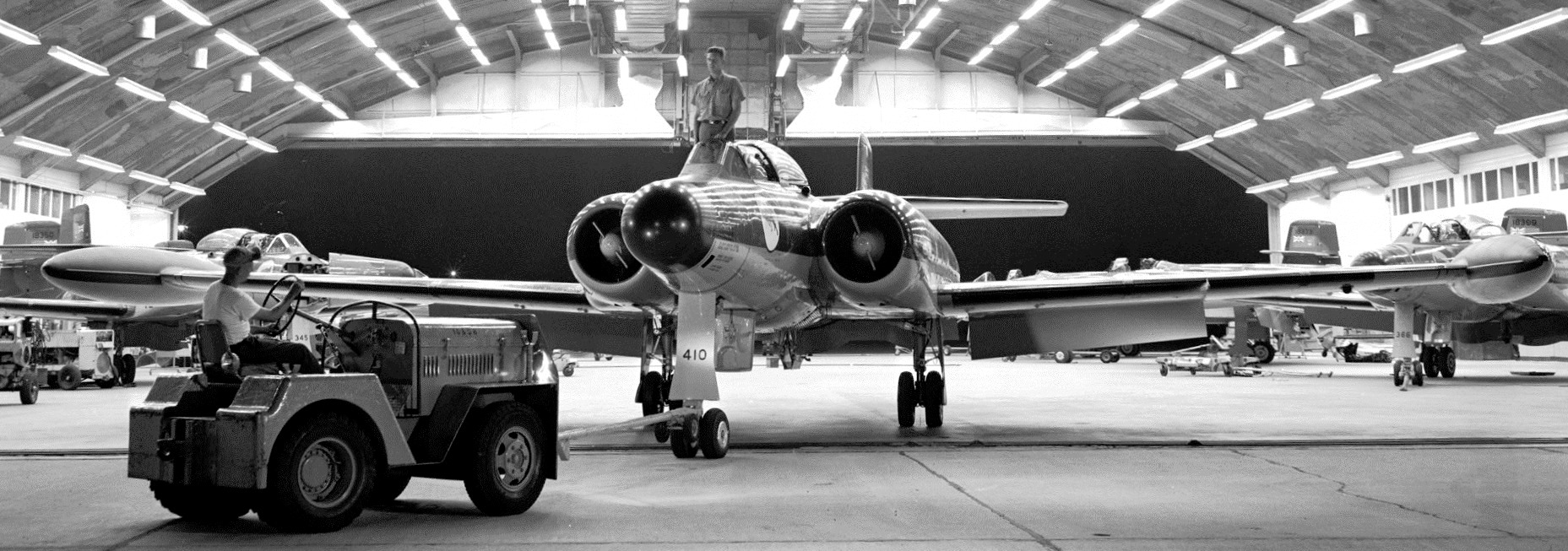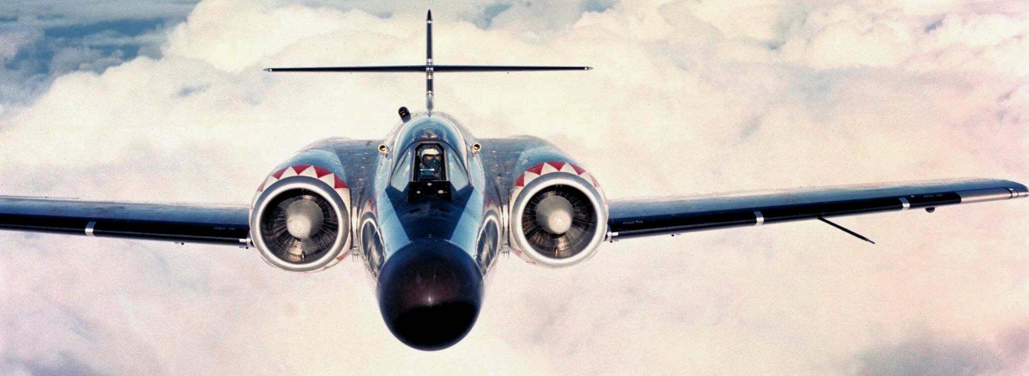 From 1961, RCAF CF-100s were withdrawn from the interceptor role, replaced by the McDonnell-Douglas CF-101 Voodoo, with some reallocated to support roles until 1981, when all remaining examples were withdrawn from service. They were replaced by the Canadair CT-133 Silver Star and the CC-117 Falcon respectively in training and electronic warfare roles. (RCAF)