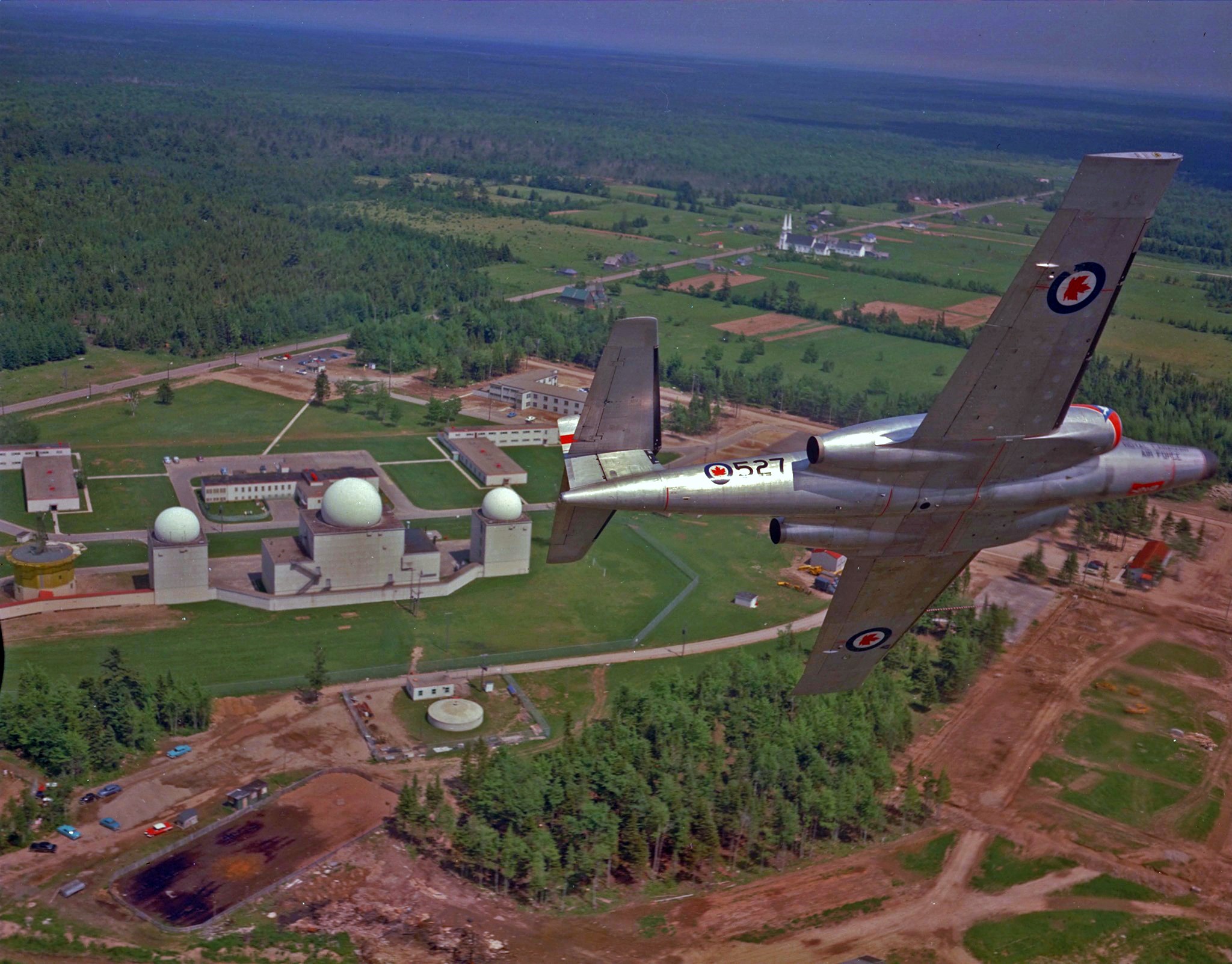 Avro CF-100 Canuck Mk. 5 (Serial No. 18527), No. 425 Squadron from RCAF Station St-Hubert, over St. Margarets, New Brunswick.