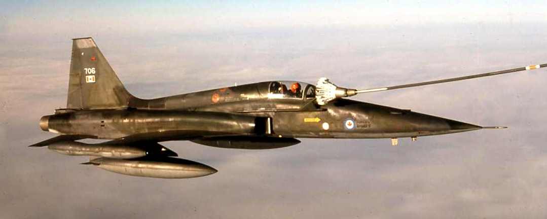 Canadair CF-116 Freedom Fighter (Serial No. 116706), 433 ETAC, air to air refueling, ca 1979-1980.