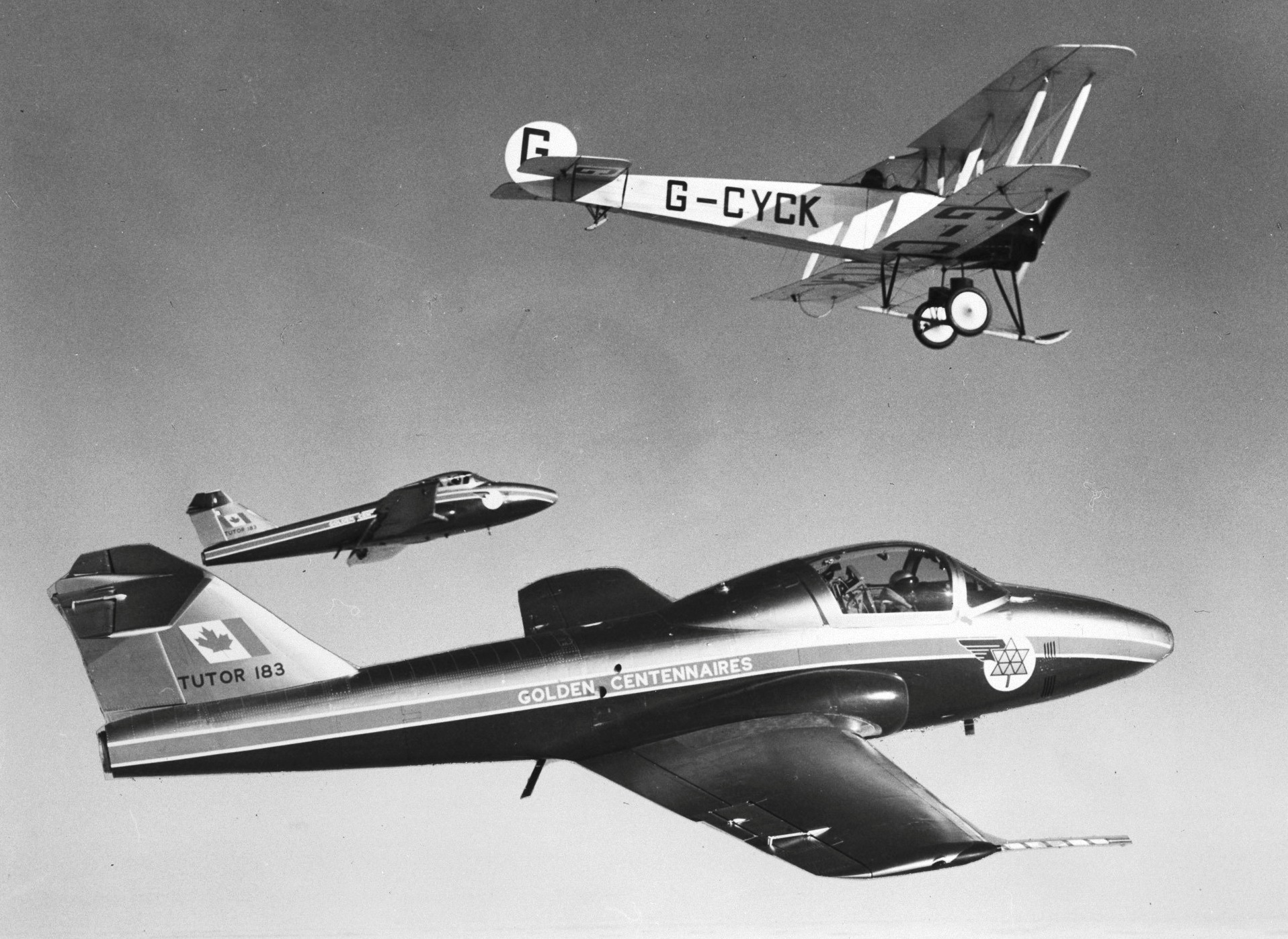 Canadair CT-114 Tutor (Serial No. 26183), Golden Centennaires in flight with Avro 504K (Serial No. D8971), C-GYCK.