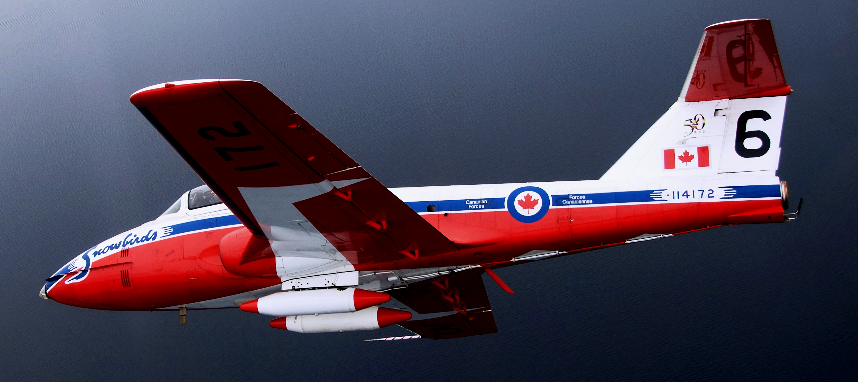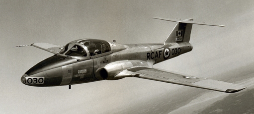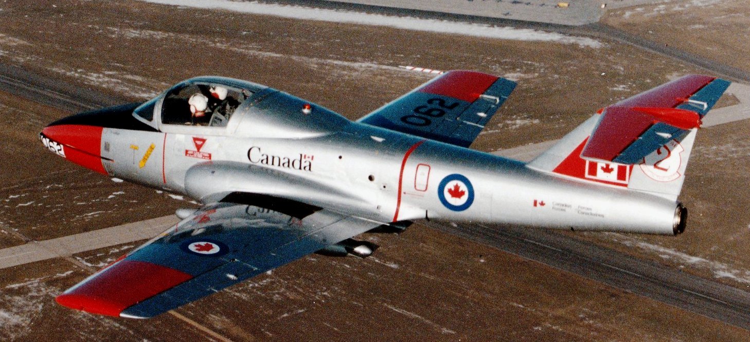 Canadair CL-41A Tutor (Serial No. 114030) in flight.