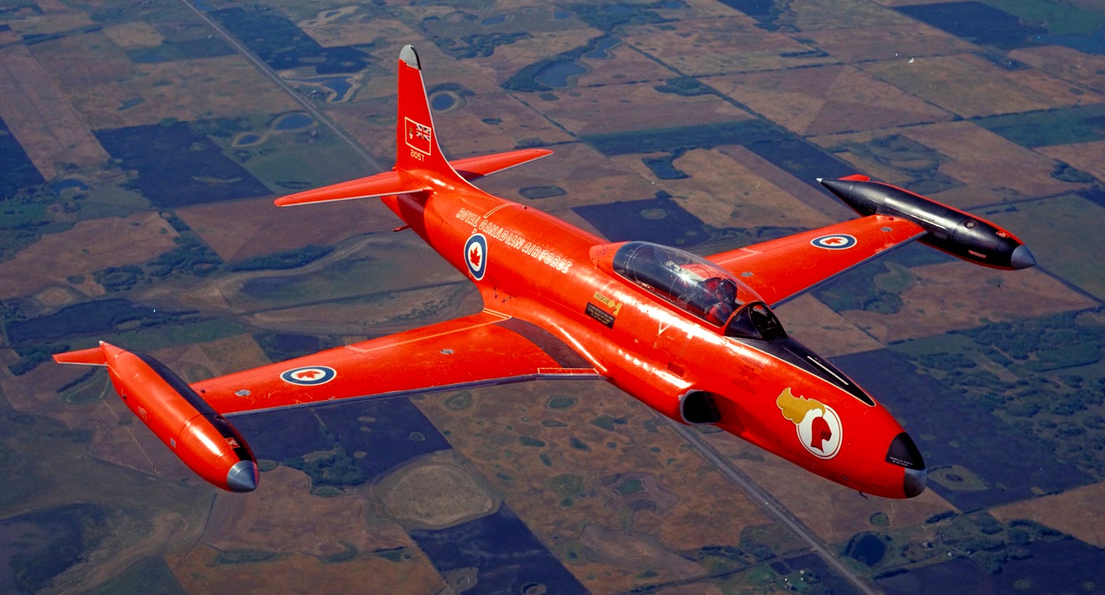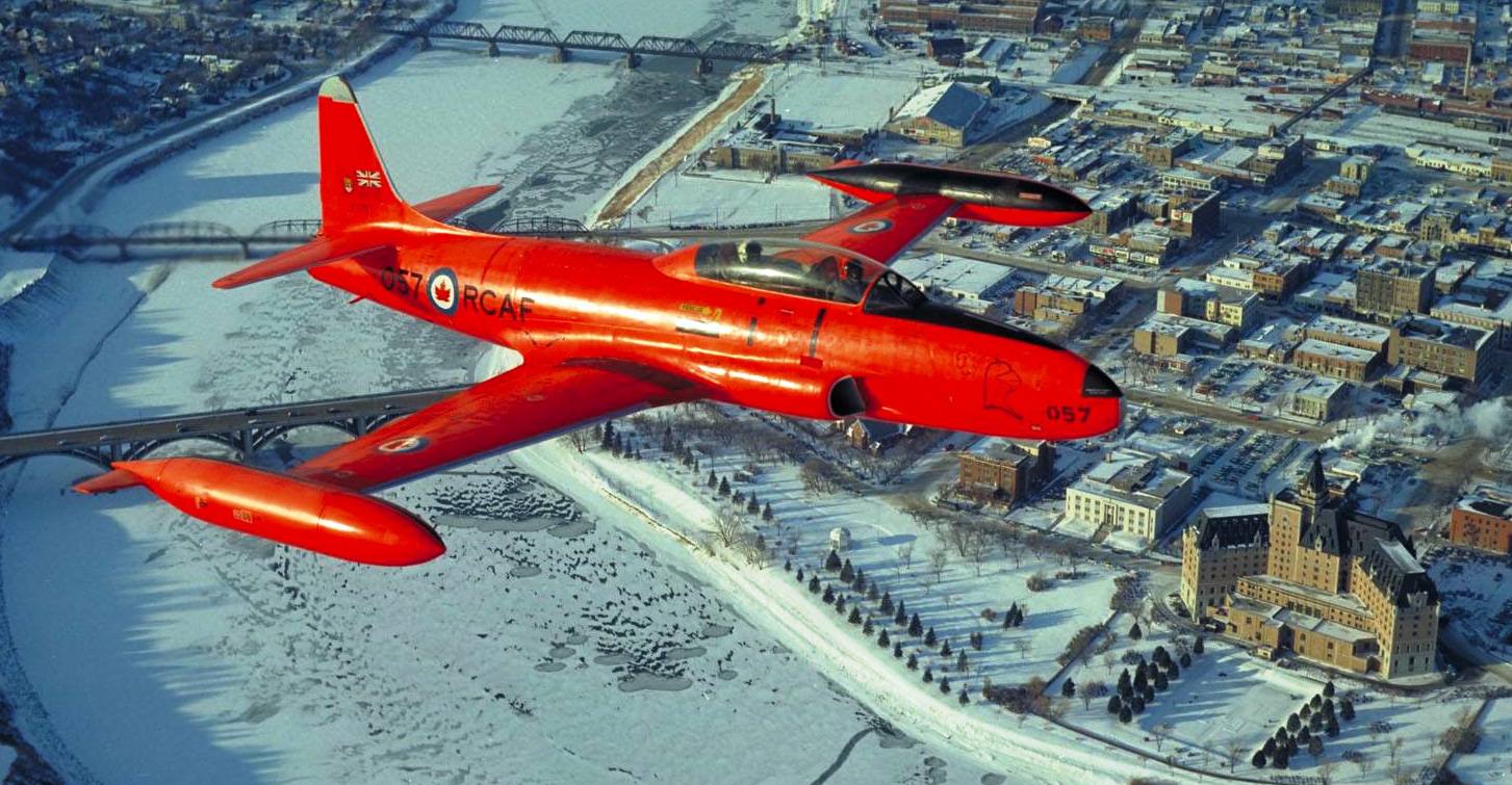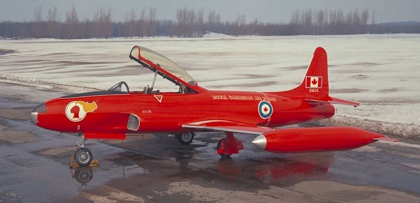 Canadair CT-133 Silver Star Mk. 3, RCAF (Serial No. 21057), Red Knight. This aircraft crashed on 21 Aug 1963 killing the pilot F/L James Wilfrid Morin while performing a Cuban 8 maneuver at Gimli.