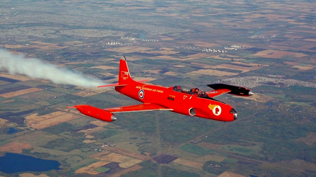 Canadair CT-133 Silver Star Mk. 3, RCAF (Serial No. 21057), Red Knight, smoking.