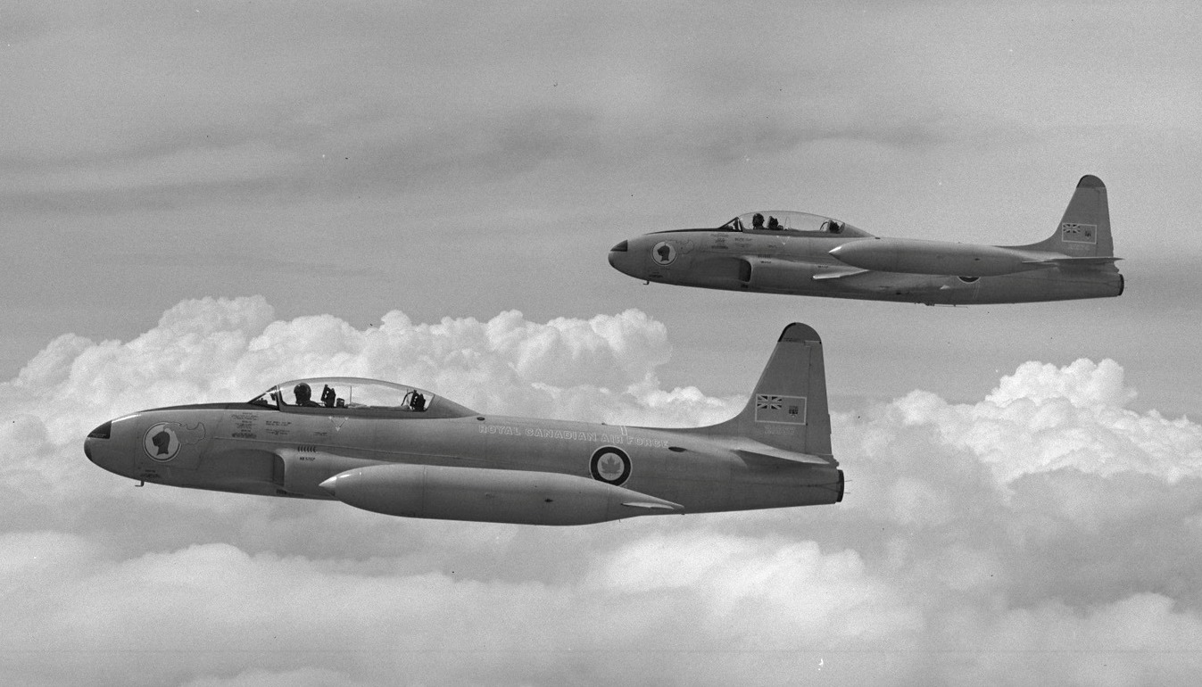 Canadair CT-133A Silver Stars, possibly c1959-60, when the Red Knight was based at RCAF Station Saskatoon along with the Central Flying School and 1 AFS.