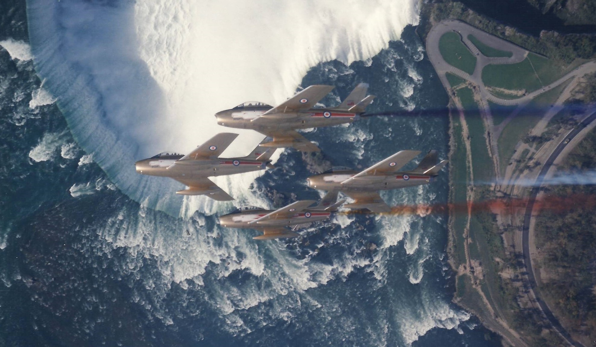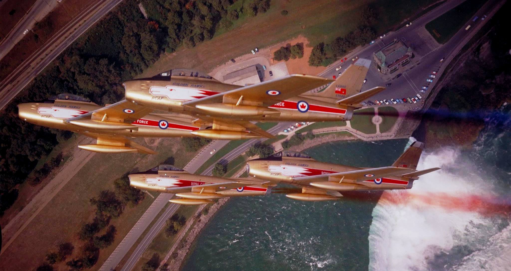 Canadair F-86 Sabres, Golden Hawk formation over Niagara Falls.