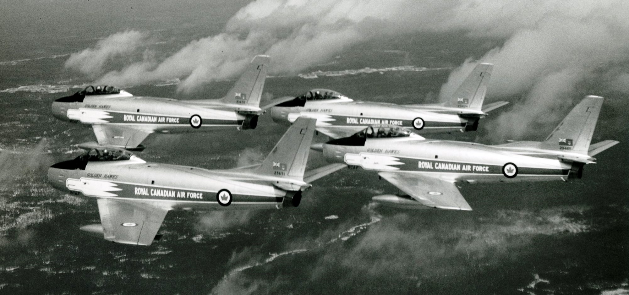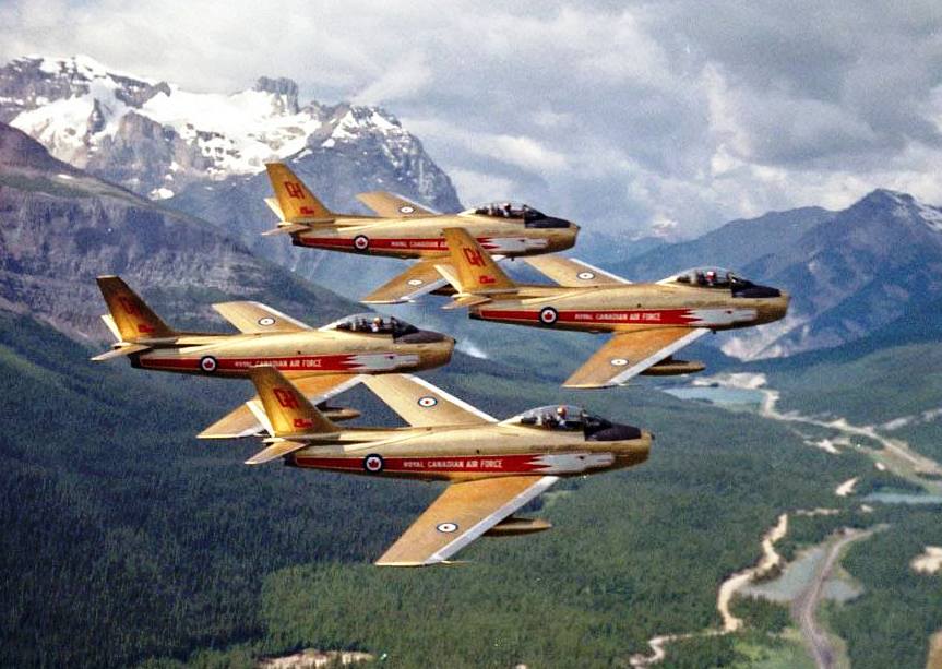 Canadair F-86 Sabres, Golden Hawks 4-plane formation over New Brunswick.
