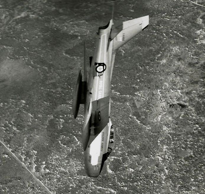 F/O Stewart’s routine as lead solo was often the one most remembered since his low-level aerobatics looked to the crowd to be particularly dangerous.  The Golden Hawks continued performing for three more seasons until they were disbanded, ostensibly for financial reasons, on 7 Feb 1964, having flown a total of 317 shows across North America.