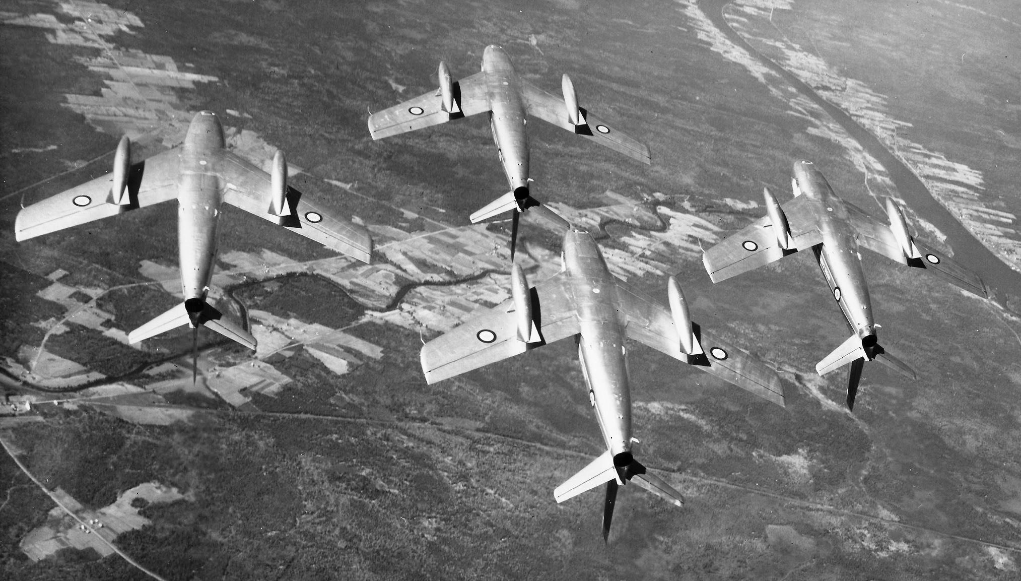 Canadair F-86 Sabre Mk. 5s, four plane GH formation.