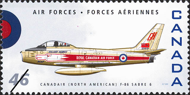 Canadair F-86 Sabre Mk. 6 (Serial No. 23651), Golden Hawk, Canada 46-cent stamp.