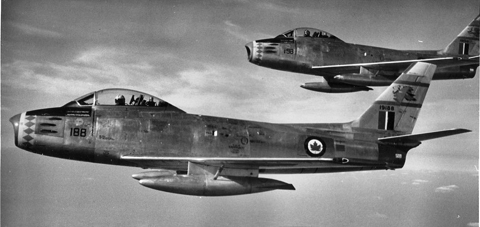 Canadair F-86E Sabres flown by Nos. 434, 438 and 439 Squadrons