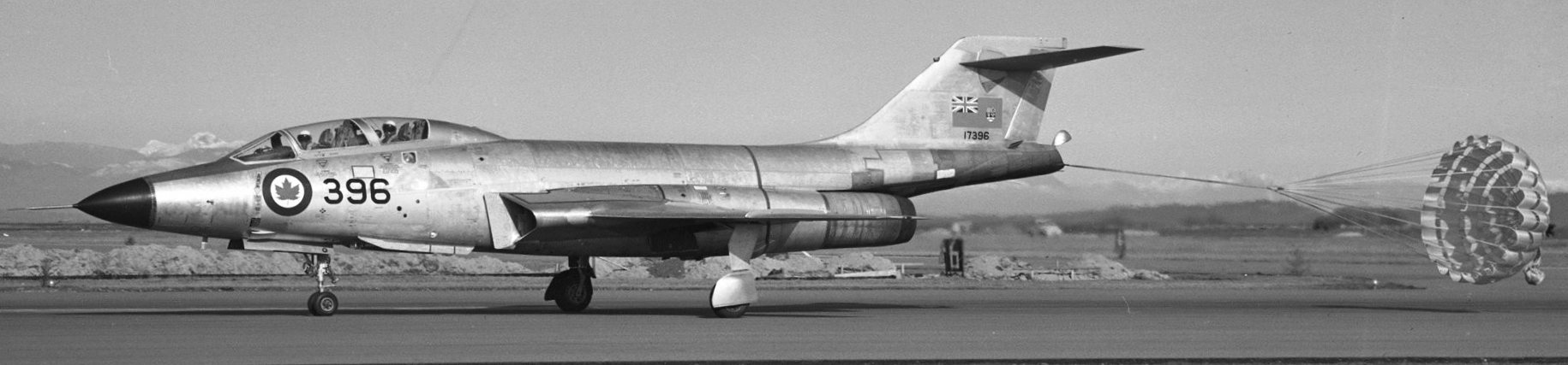 McDonnell CF-101B Voodoo (Serial No. 101041), No. 425 Squadron, with drag chute deployed on the landing roll out.