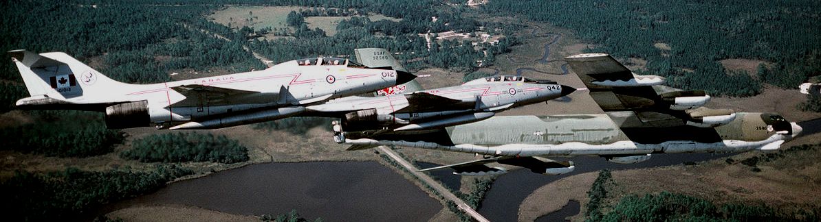 McDonnell CF-101B Voodoo (Serial No. 101067), No. 414 Squadron, (Serial No. 101014), No. 425 Squadron, (Serial No. 101043), No. 416 Squadron, and (Serial No. 101057), No. 409 Squadron.