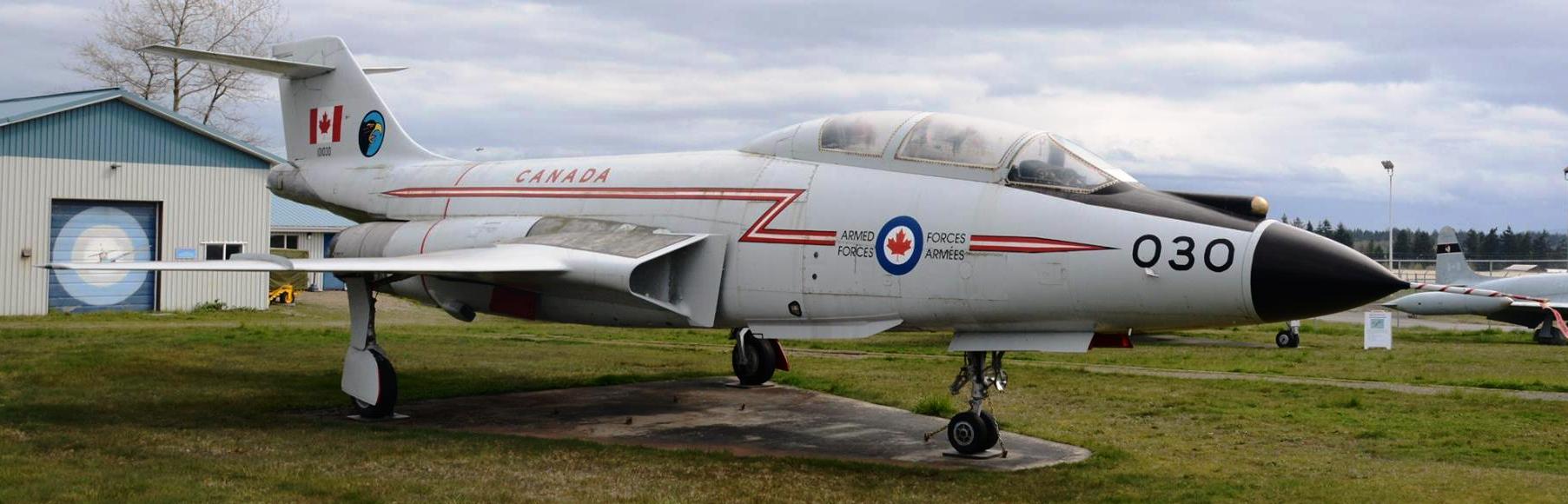 McDonnell CF-101B Voodoo, (Serial No. 101030), USAF (Serial No. 57-0354), C/N 532, formerly on display on the grounds of RRMC, Victoria. This Voodoo was originally built for the USAF as an F-101B-90-MC, c/n 532. It served in the USAF with the 444th Fighter-Interceptor Squadron at Charleston AFB in South Carolina. As part of Operation Peace Wings, it joined the Canadian Forces on 28 July 1971, serving with No. 409 Squadron at CFB Comox. Later it served with No. 425 Squadron at CFB Bagotville, Quebec. It became Instructional Air Frame 827B on 11 July 1984 and was later struck off on 15 May 1990. It was moved from Victoria, BC to the Comox Air Force Museum, 19 Wing, CFB Comox, British Columbia.