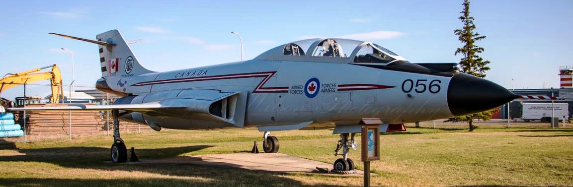 McDonnell CF-101B Voodoo (Serial No. 101060), ex-USAF (Serial No. 57-0433), from CFB Chatham-based No. 416 “Lynx” AW (F) Squadron, mounted on a pylon in front of the Alberta Aviation Museum, Edmonton, Alberta.