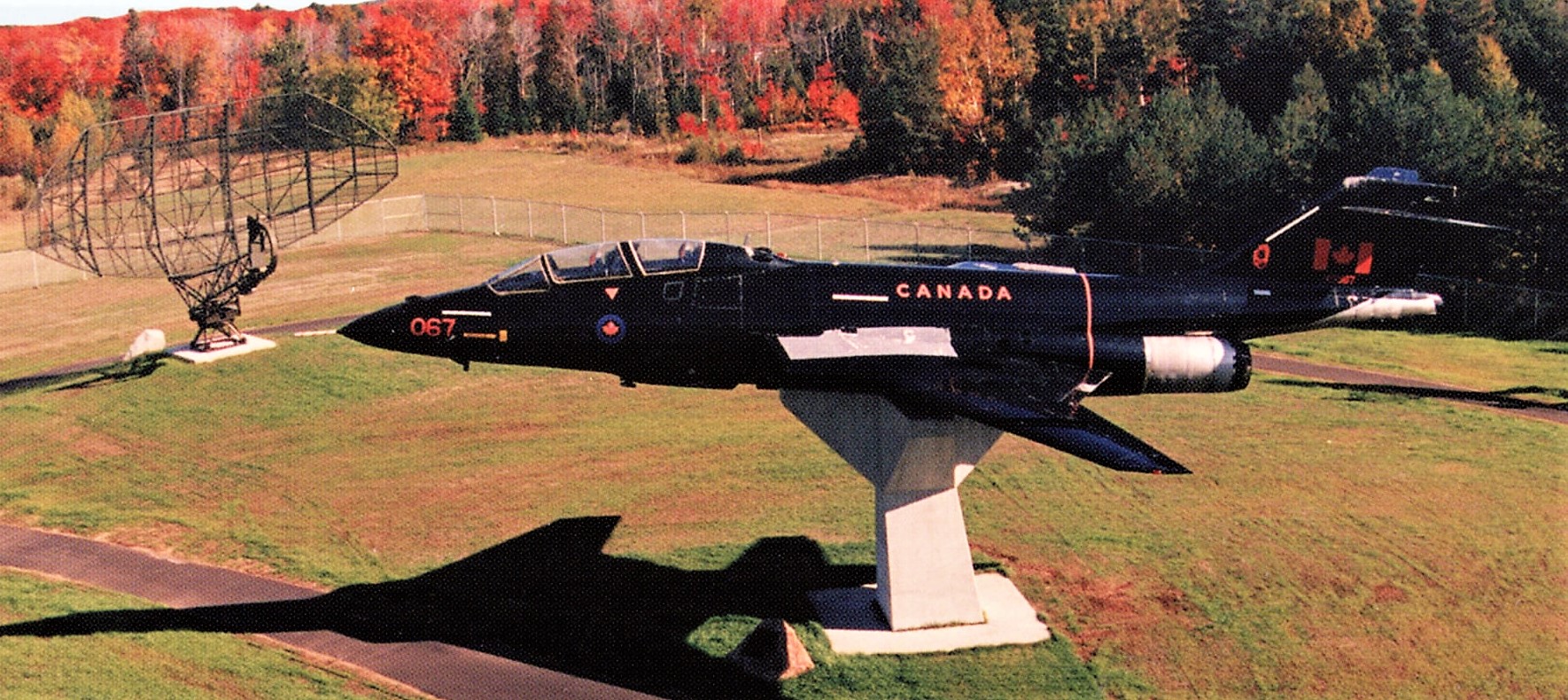 McDonnell EF-101B Voodoo (Serial No. 101067), the CAF “Electric Voodoo” used by No. 414 (EW) Squadron at CFB North Bay as an ECM aggressor aircraft with a distinctive all black paint scheme, to identify it from “friendly” Voodoos. It was leased from the USAF in 1982 shortly before the Voodoos were retired from the CAF in 1984 and it continued to fly until it was returned to the USAF in 1987. Ex-USAF (Serial No. 58-0300), F-101B-105-MC. It is currently on display at the Minnesota ANG Historical Museum, Minneapolis-St Paul Airport, Minnesota as a USAF 148th FIG aircraft. Note that the aircraft on display at North Bay marked as (Serial No. 101067) is actually (Serial No. 101054).