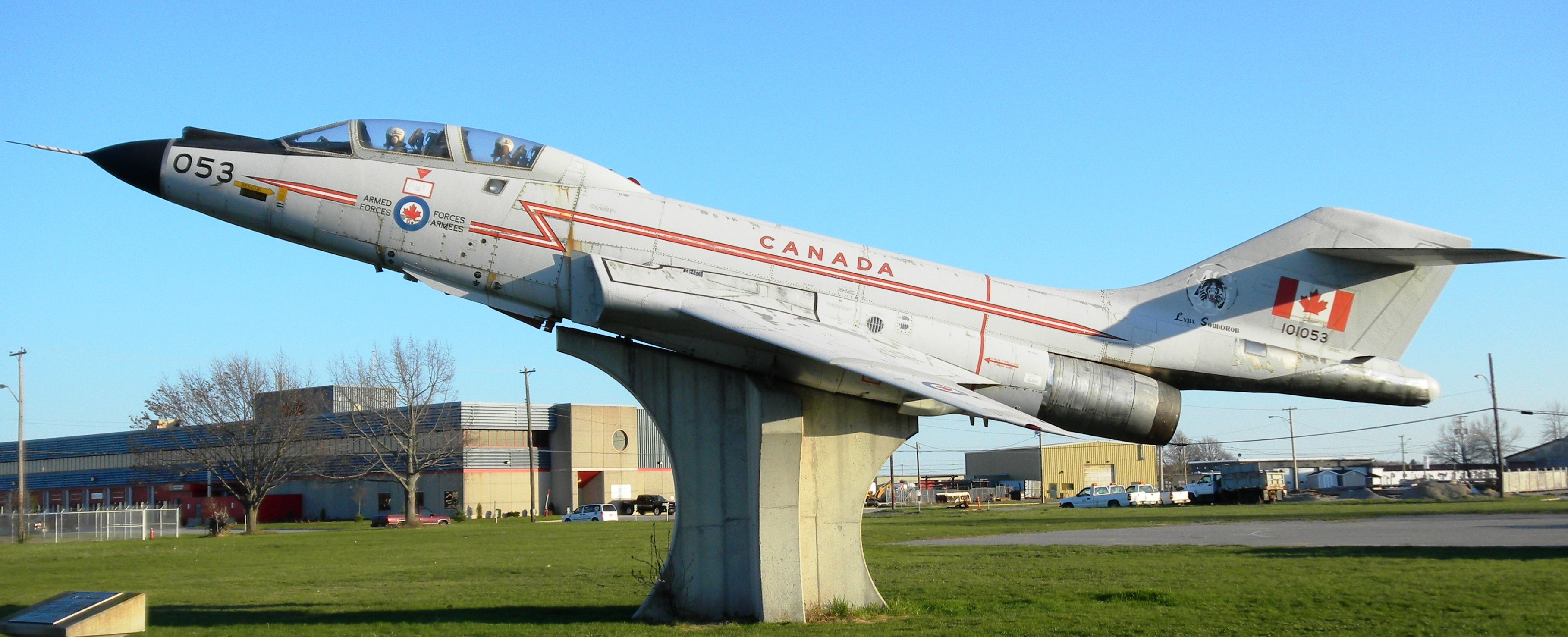 McDonnell CF-101B Voodoo, (Serial No. 101053), mounted on a pylon on the grounds of former CFB Chatham, now the Miramichi, New Brunswick.