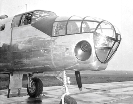 North American Mitchell Mk. II, RCAF (Serial No. 894), close up view of camera modification, No. 13 (P) Squadron, 4 July 1944.