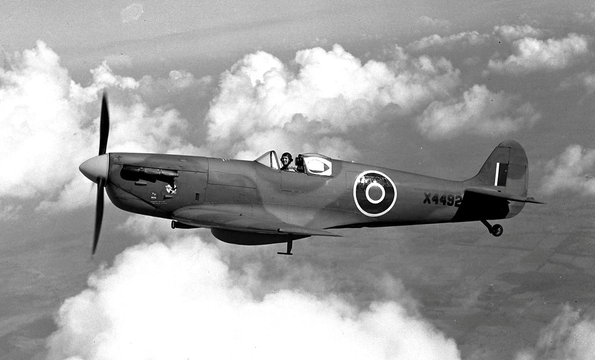 Supermarine Spitfire F Mk. VI, RCAF (Serial No. X4492), flown by Tony Grub of No. 13 Squadron, 26 Feb 1944.  Built as X F Mk.1 4492, later converted to X F Mk. V.