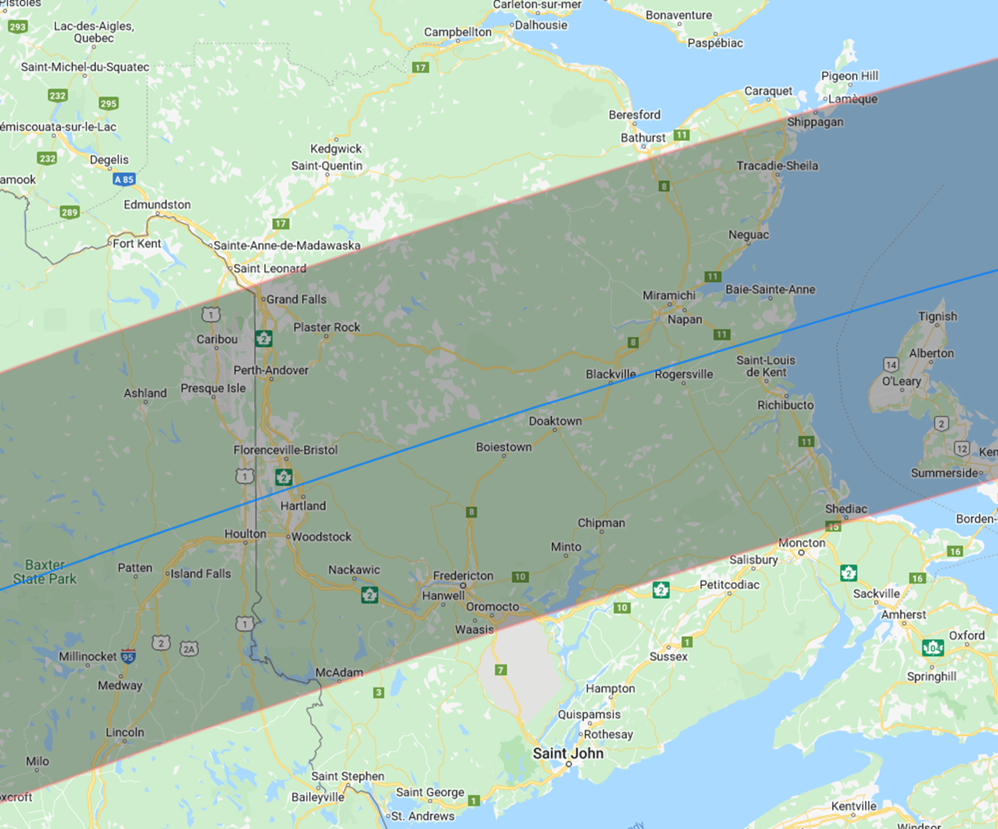 On Monday, 8 April 2024, a total solar eclipse passed through central New Brunswick, Canada. The areas of Fredericton, Woodstock, Florenceville-Bristol and Miramichi all experienced 100% totality, that is, a complete coverage of the sun. The path of this extraordinary cosmic event also crossed the southern tips of Ontario and Quebec, western P.E.I. and central Newfoundland.