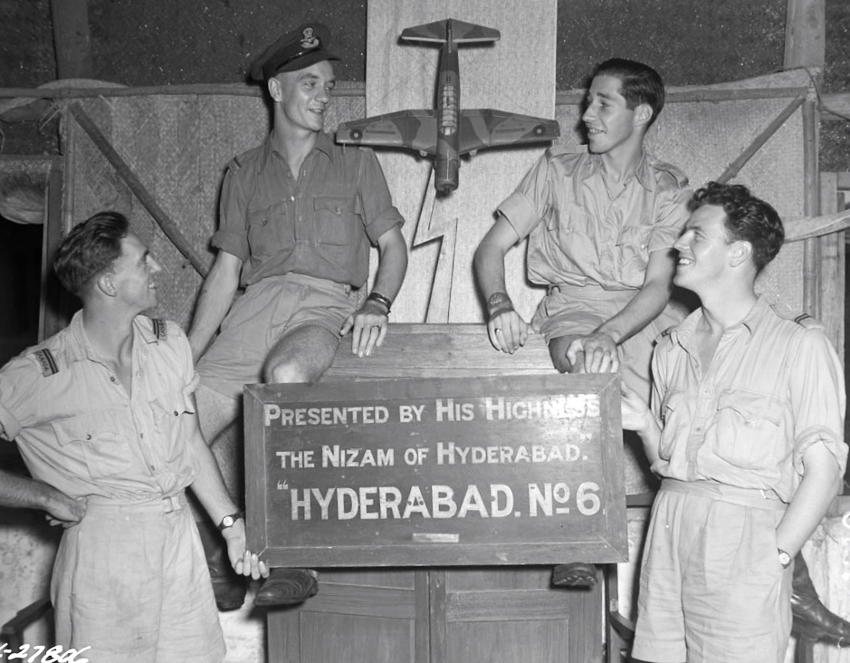 Four Canadian members of a Vengeance dive bomber squadron, credited by the British Army with playing an important part in driving the Japanese from India in the recent struggles in the Imphal area, 23 September 1944.