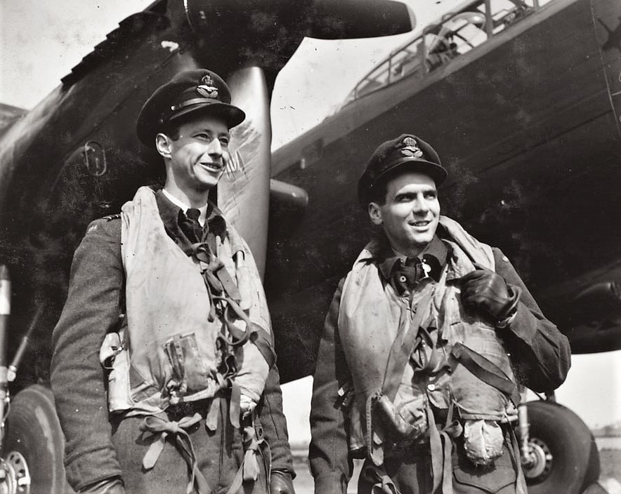 After a tour on operations on the same RAF Lancaster crew. F/L Art H. Murton, left, pilot, has been posted back to Canada. His navigator, F/O H.M. Bertling, right, remains in Britain to instruct at an OTU. They specialized in mine laying, which required a high degree of bombing skill. F/L Art Murton received the DFC effective 30 October. He was with the RAF’s No. 103 ( B ) Squadron.