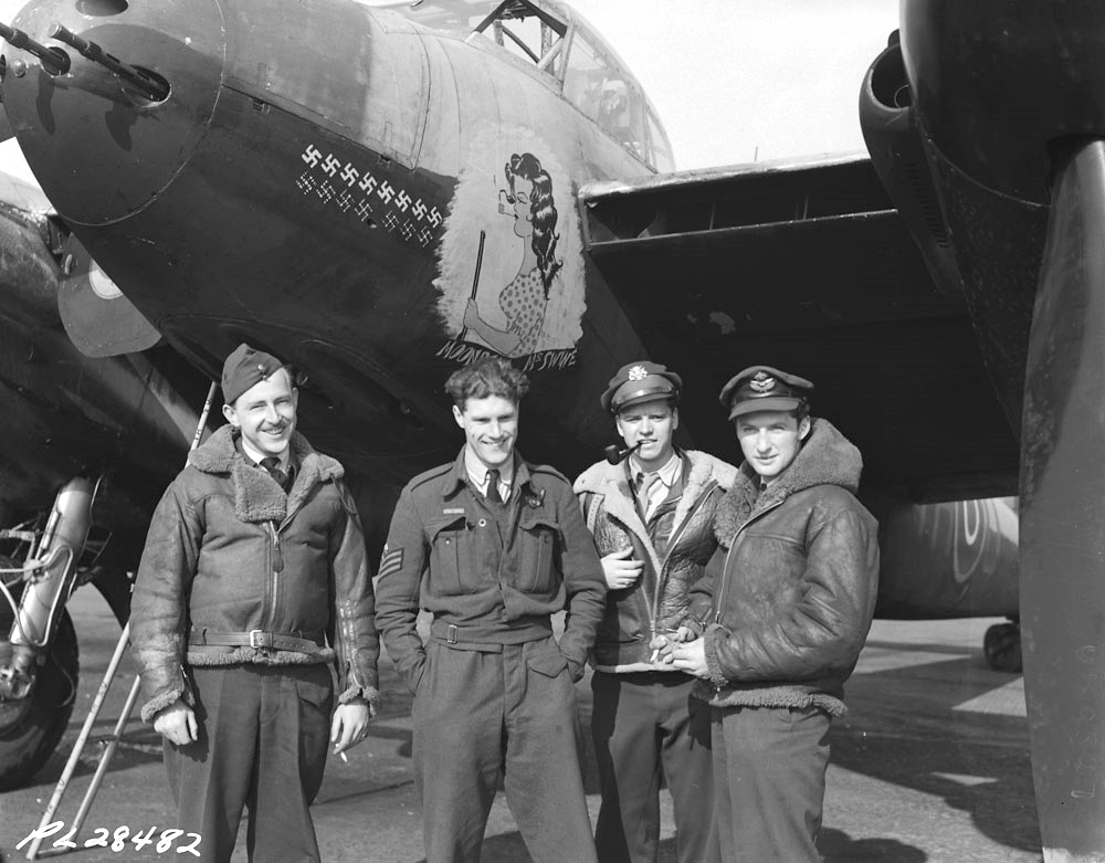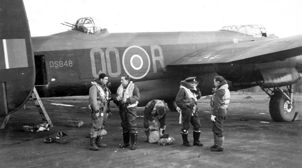 RCAF aircrew with an Avro Lancaster B.II (Serial No. DS848), coded QO:R, of No. 432 (Leaside) Squadron, RCAF, in the UK in 1944.