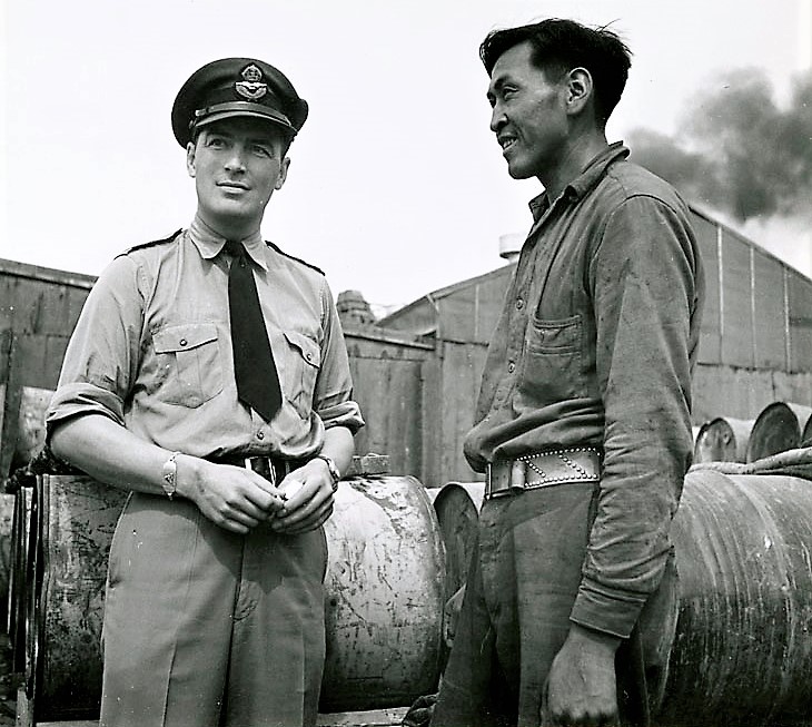 F/O Frank Moore and F/L Frederick Ashbaugh, No. 104 Squadron, RAF, (Legion Balkans). TJ15538 Flight Lieutenant Frederick Alexander Ashbaugh born in Busby, Alberta and raised in Vancouver, B.C. was awarded the Distinguished Flying Cross while with No.104 (B) Squadron. The award was effective the 31st of August, 1944 as per London Gazette dated the 8th of September, 1944 and AFRO 2231/44 dated the 13th of October, 1944. Ashbaugh survived the war. The Squadron flew Wellingtons, then Liberators and finally the Lancaster B. Mk. VII (F.E. – Far East) until November, 1945 from Abu Sueir, Egypt. (Chris Charland)