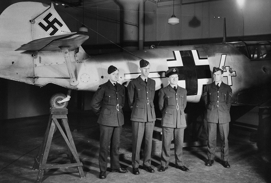 RCAF airmen with a captured Messerschmitt Bf 109 in the UK, c1945.