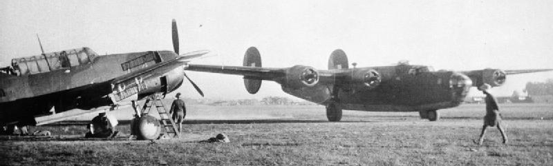 RAF Consolidated B-24 Liberator and a Vultee Vengeance, No. 1 (India) Maintenance Unit, Drigh Road, India.