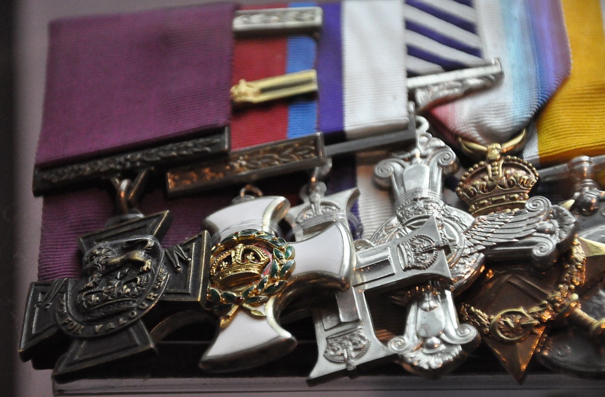 Billy Bishop’s decorations (now part of Canadian War Museum collection) include (left to right) Victoria Cross, Distinguished Service Order with Bar, Military Cross, Distinguished Flying Cross, 1914–1915 Star, British War Medal 1914–1920.