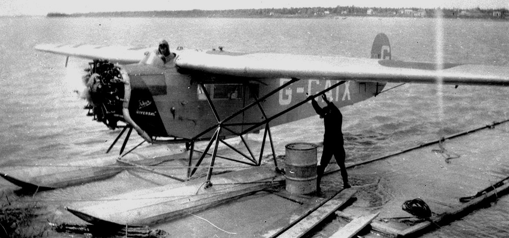 Fokker Universal floatplane, G-CAIX, at Winnipeg, Manitoba, 1927. Pilot Fred J. Stevenson and Engineer Bob Hodgins.