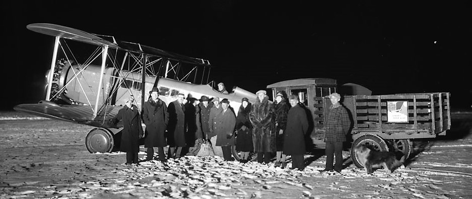 9 Dec 1929. Fairchild 71T, Reg. No. CF-AAT, first air mail flight Montreal-Quebec-Moncton-St.John. Arrival at Moncton from Quebec. CF-AAT was registered in March 1929 to Canadian Transcontinental Airways. It was merged into Canadian Airways Ltd in 1930. CF-AAT was damaged beyond repair in an accident 5 miles NW of Sioux Lookout, Ontario on 12 March, 1936.