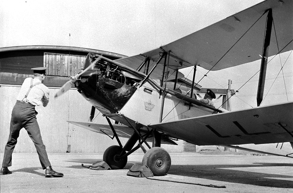 de Havilland DH.60GM Gipsy Moth, RCAF (Serial No. 77), being started by ground crew, 1938.