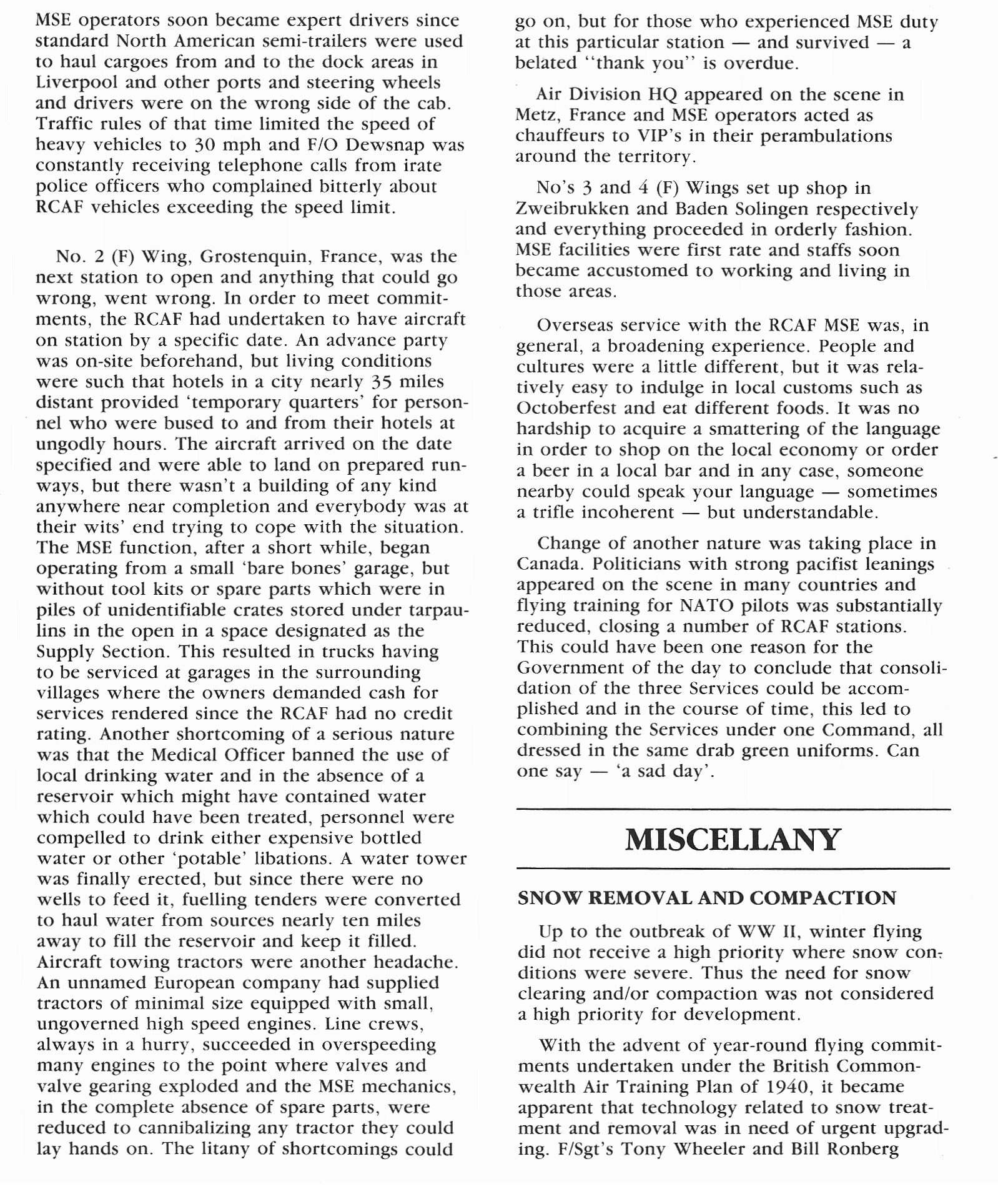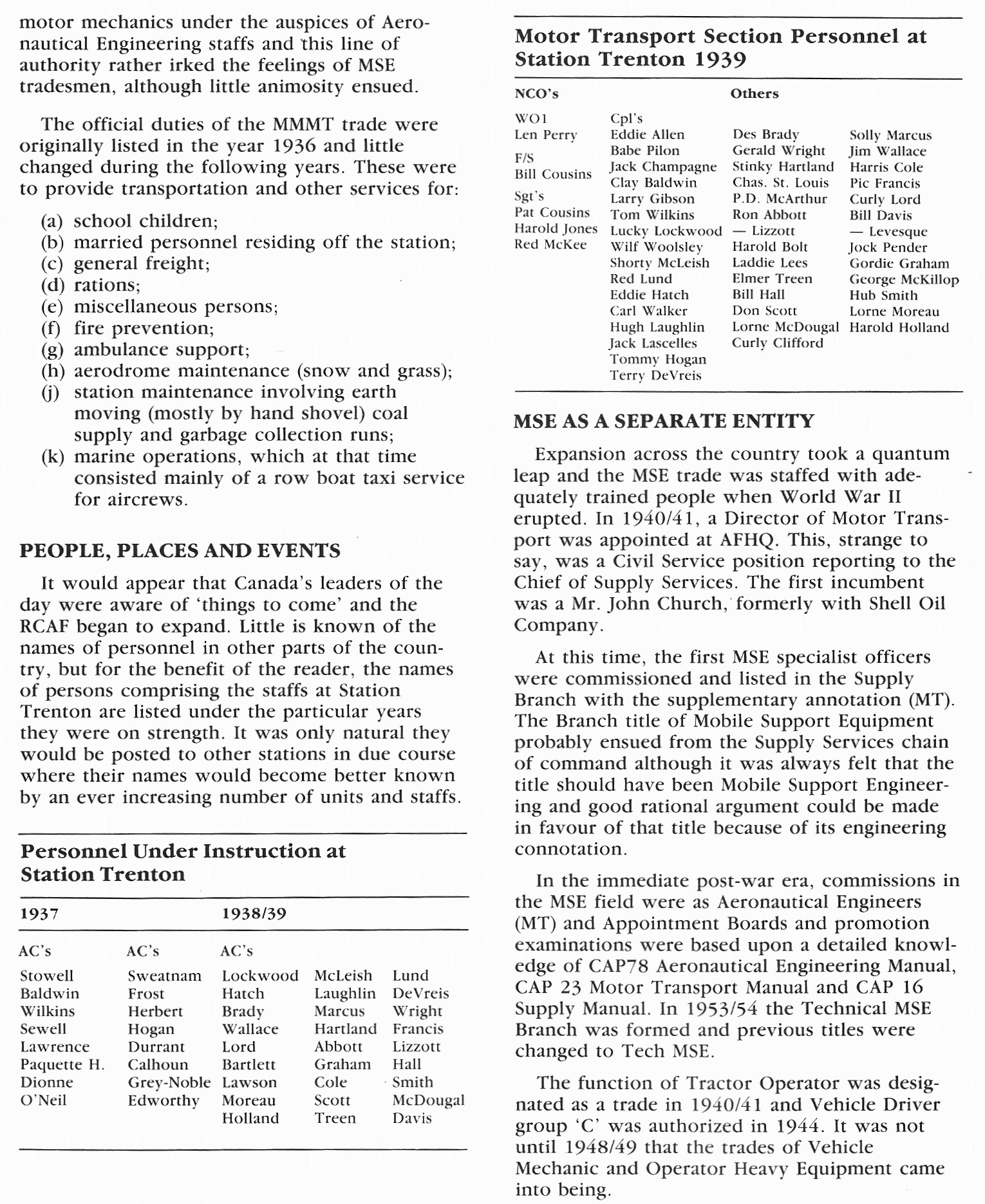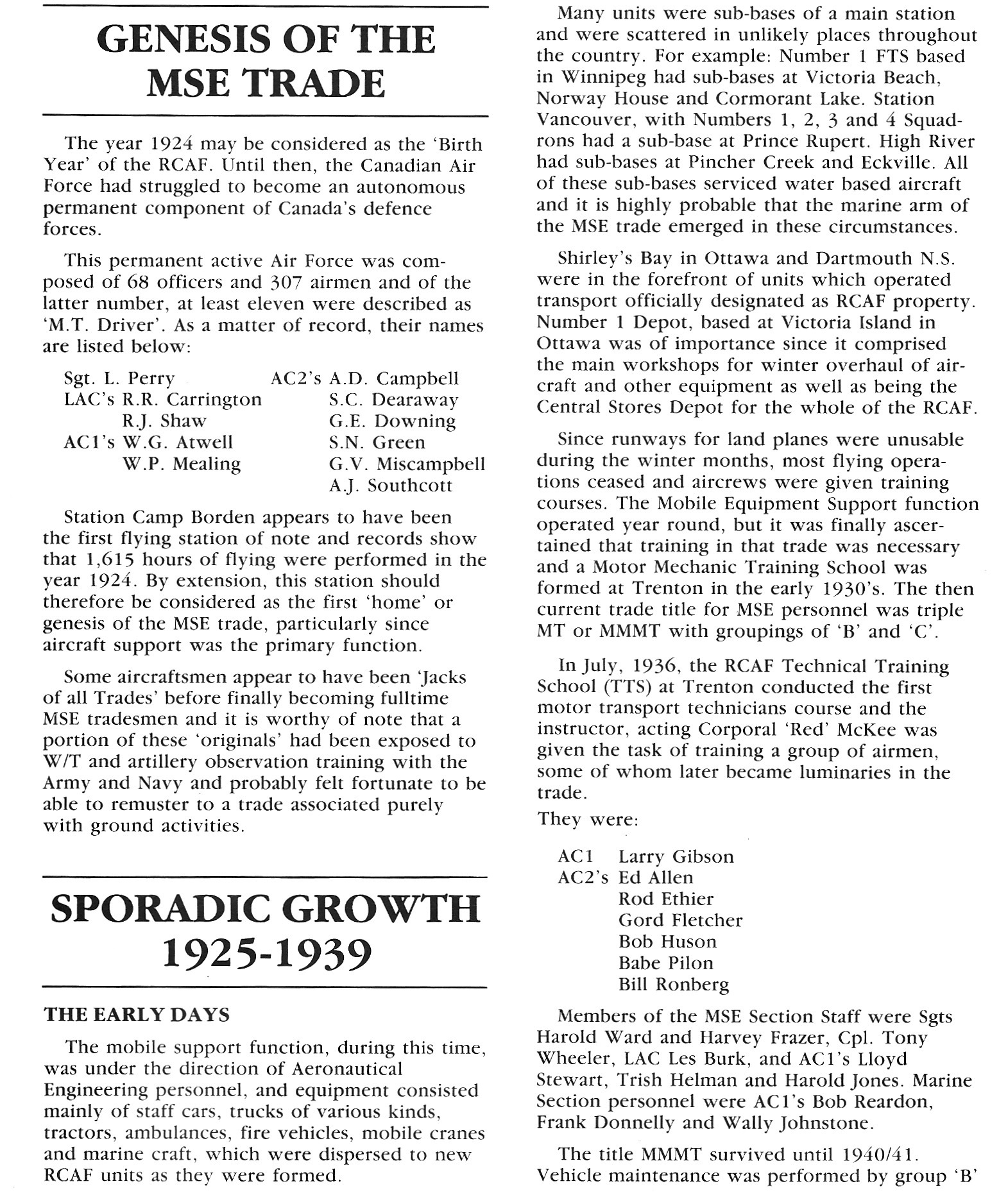 Extracts from the RCAF MSE Logbook, 1924-1967, Reunion 1985