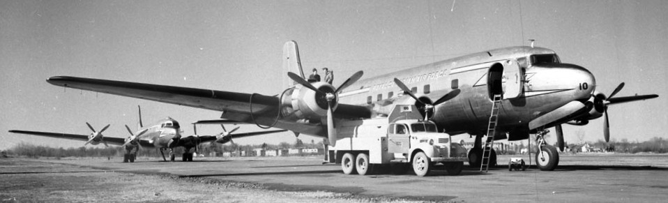 RCAF refuelling tender servicing a Canadair CL-2 North Star, 23 May 1951.