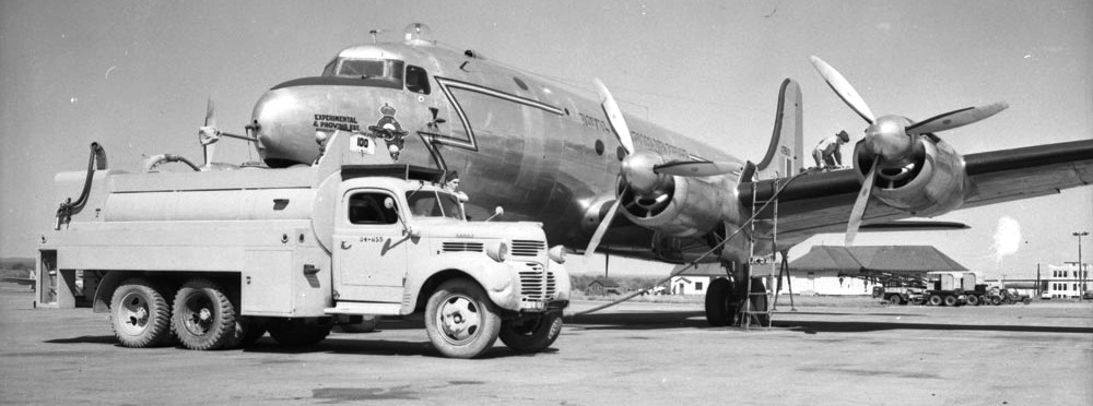 RCAF refuelling tender No. 655, servicing a Canadair CL-2 North Star, 6 Sep 1949.