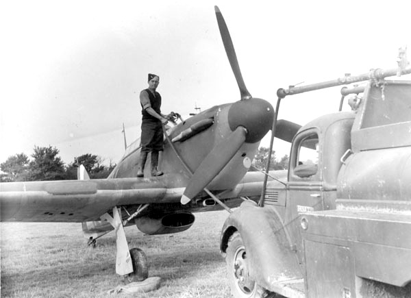 RCAF refuelling tender servicing a Hawker Hurricane Mk I, 6 Oct 1940.